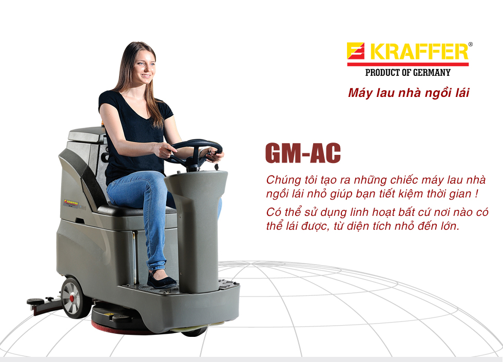 * Giới thiệu về máy lau nhà xưởng dạng ngồi lái Kraffer GM-AC: