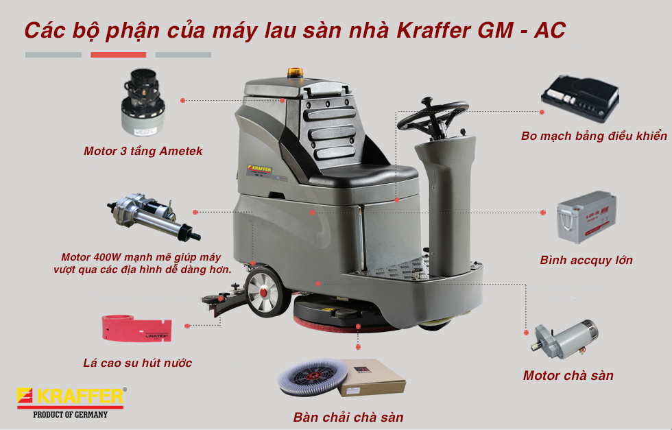* Đặc điểm về máy chà sàn nhà Kraffer GM-AC: